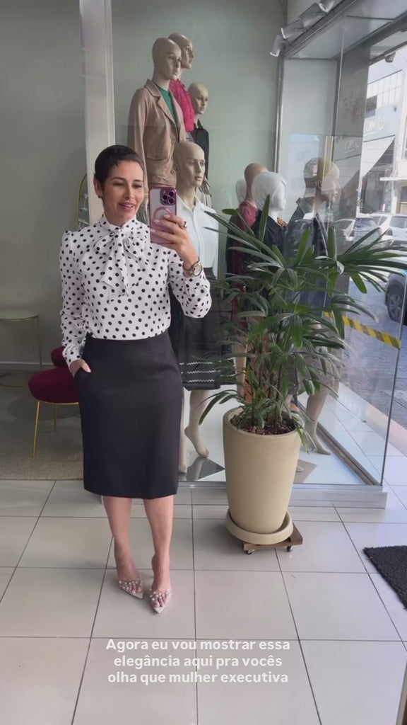 Saia Alfaiataria Forrada com Bolsos + Blusa Crepe Forrada
