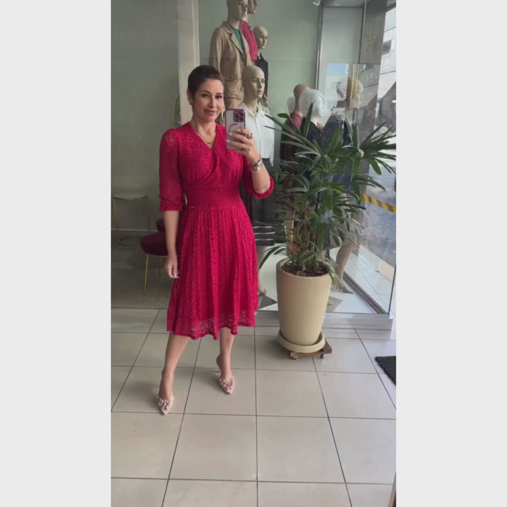O Vestido Transpassado com Saia Plissada em Renda Forrado é a definição de elegância e feminilidade.