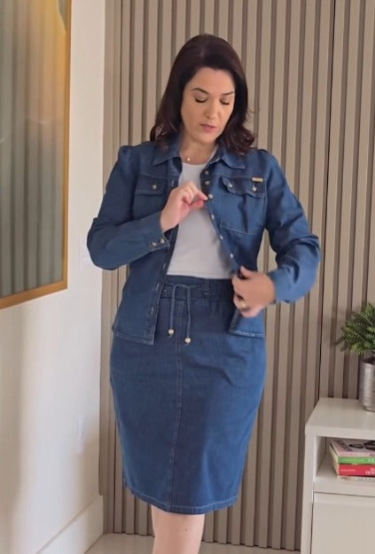 O Conjunto Jeans Feminino, composto pela Camisa Manga Longa e Saia com Bolsos e Elástico, traz o equilíbrio perfeito entre conforto e estilo. Com uma modelagem que valoriza o corpo e peças que se encaixam de forma prática no seu dia a dia, esse conjunto é ideal para quem busca um look casual e sofisticado ao mesmo tempo.